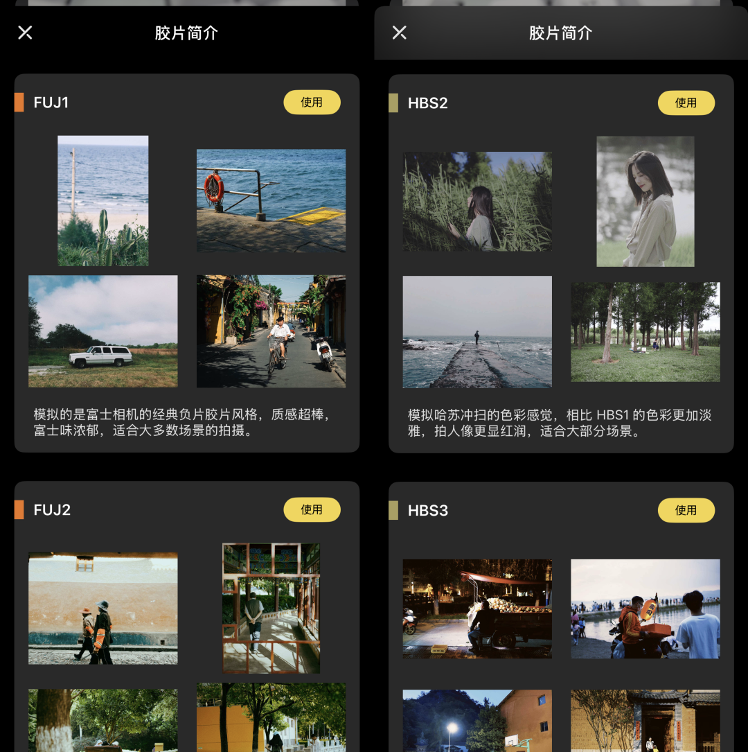 App 自帶了 25 款濾鏡風格,包括富士、哈蘇經典復刻,還有一些作者自研濾鏡。
