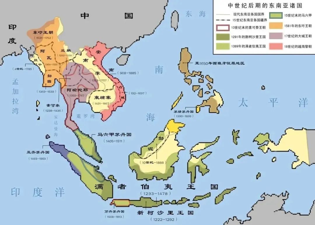 從素可泰到阿瑜陀耶,泰族政權不斷壯大,勢力範圍早已超出湄南河流域,開始頻繁向東入侵日益衰弱的瀾滄(今老撾)、柬埔寨等國,奪取了大片領土。