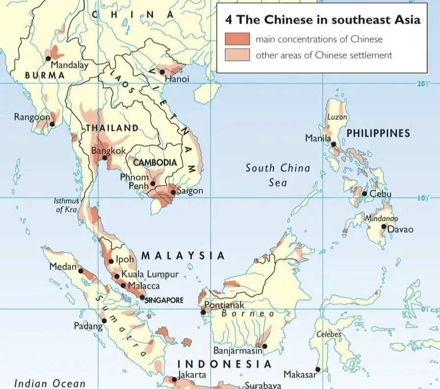 泰國之外,其他東南亞國家也有大量華人移民,如英國控制的馬來亞、新加坡等地。相較於泰國,生活在馬來亞、南洋羣島的華人難以融入當地社會。