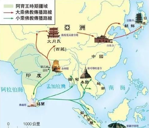 與此同時,佛教從印度傳來,後分化為北傳(東亞)、藏傳(青藏、蒙古)、南傳(東南亞)等幾個主要流派。