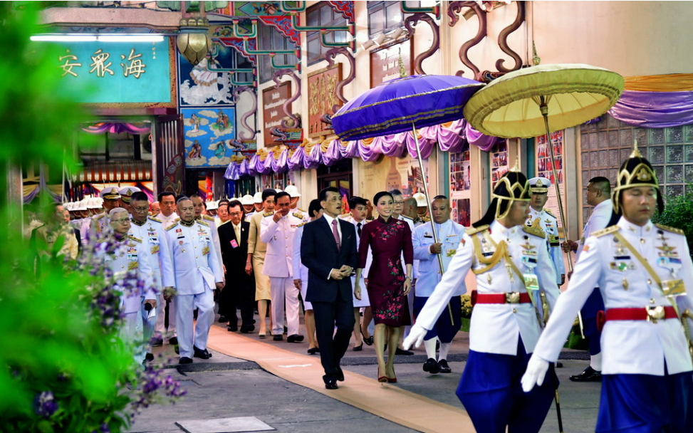 ▲泰王巡視曼谷唐人街,王后身着中式旗袍
