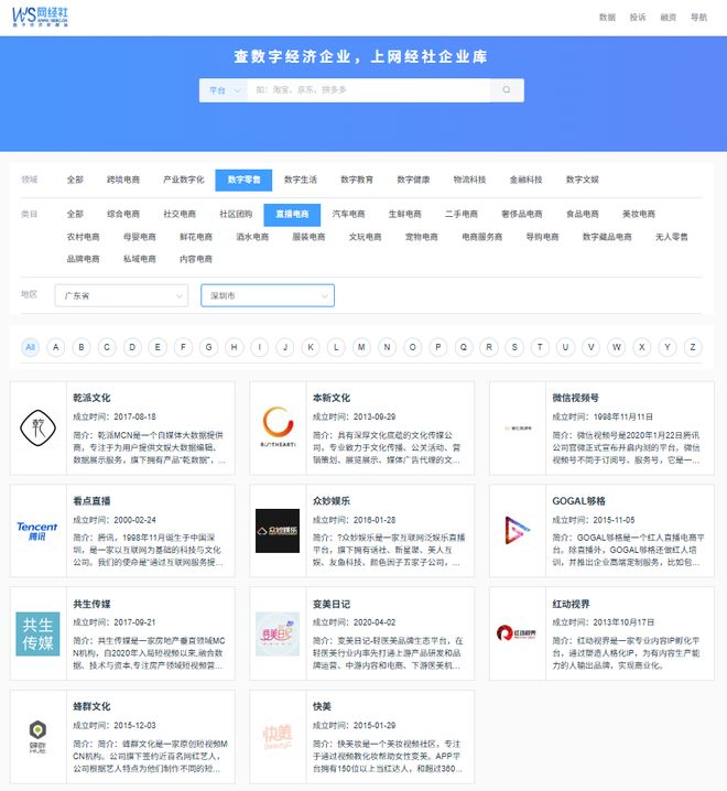 網經社企業庫收錄的深圳市共有直播電商企業11家,包括乾派文化、本新文化、微信視頻號、看點直播、眾妙娛樂、GOGAL夠格、共生傳媒、變美日記、紅動視界、蜂羣文化、快美。