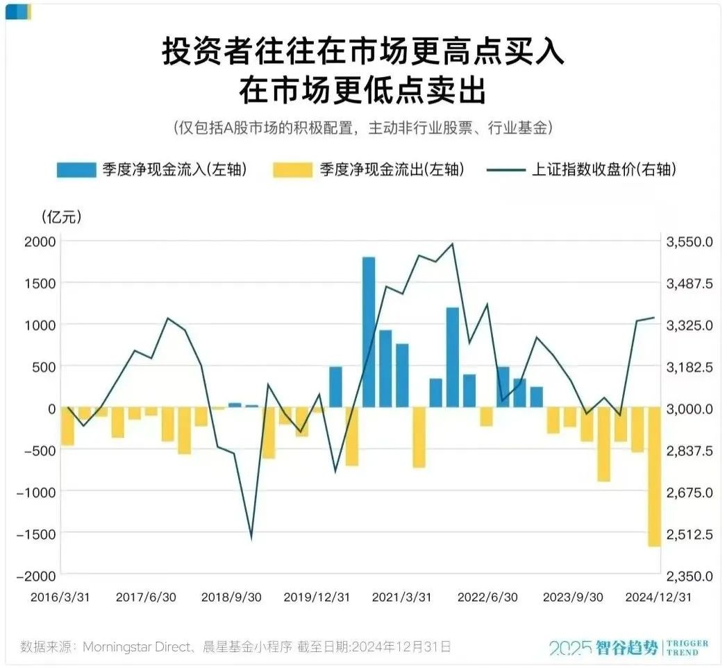 晨星中國近期發佈的《中國公募基金的投資者回報差研究-當幻想撞上現實》系列報告中提出,投資者的交易決策往往容易受到市場情緒的牽引,在短期市場熱度驅動下跟風押注大量資金,選擇性忽視潛在的下行風險。