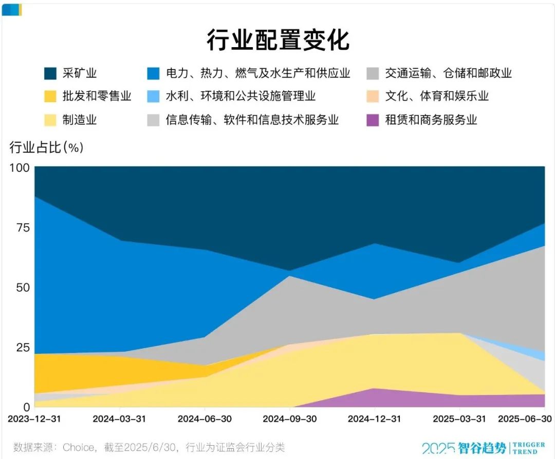 到了2024年三季度,全球經濟增長重回温和、製造業走弱背景下,快速將部分配置重心從上游資源端(公用事業、傳統能源)切換到下游消費端(有色、交運)以及港股互聯網科技。