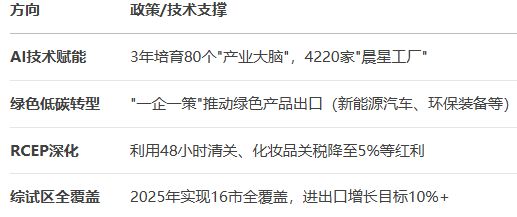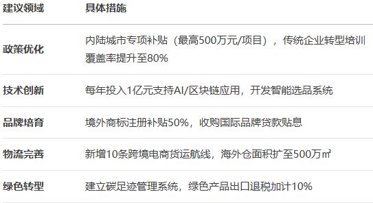 **政策體系完善:**形成了從省級到市級的完整政策支持體系,為跨境電商發展提供了有力保障。