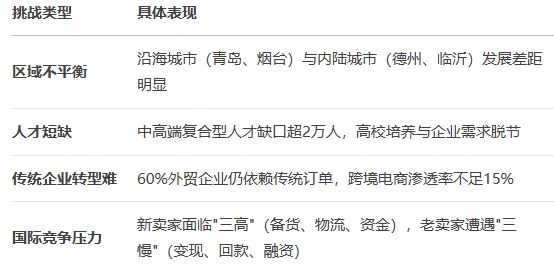 儘管取得顯著成效,山東省跨境電商發展仍面臨以下挑戰: