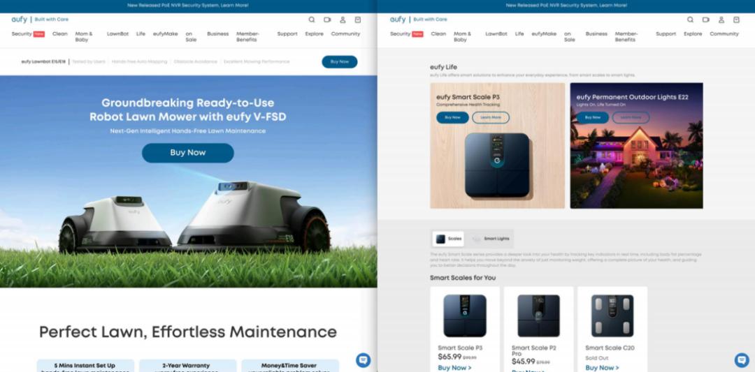 例如:安克不僅做充電設備,還做吸塵器、割草機、體重秤。用慣常邏輯來看,這些產品之間都沒有關聯,於是安克做了eufy——家居用品全品類網站。在這個獨立站裏面,可以用相同的流量,相同的關鍵字,相同的backlink,相同的客户羣來測試哪個產品更受大眾喜愛。