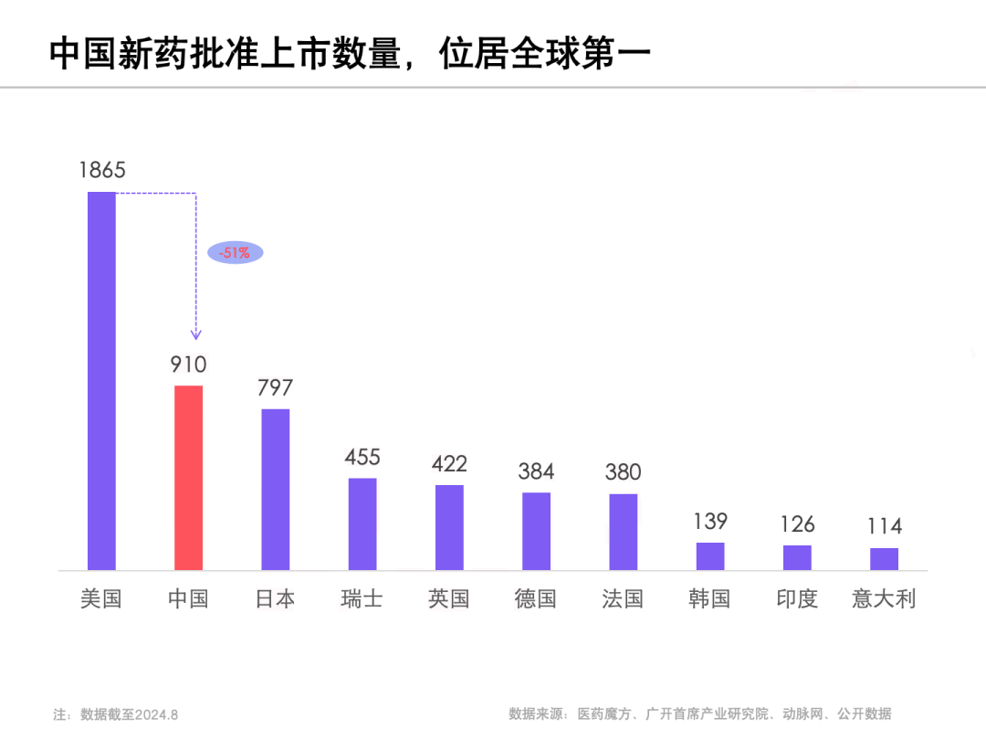 截至2024年8月,我國共有910個新藥上市 圖片來源:鈦媒體