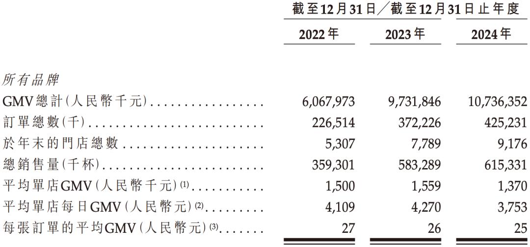 招股書顯示,2022~2024上半年滬咖單店日均GMV分別為139元、136元和116元,慘淡的銷量使得門店數在2024上半年還有所縮減。