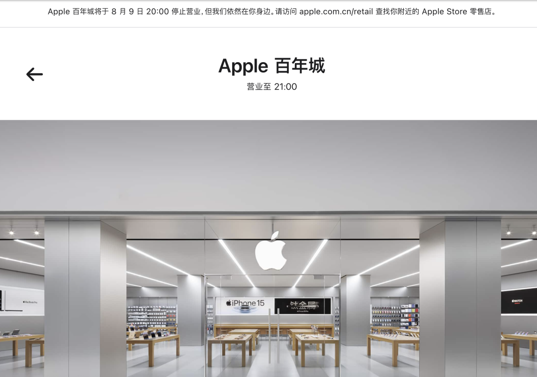 可一盆冷水,猝不及防。蘋果中國官網掛出一則消息:大連百年城的Apple Store,8月9日晚八點,關門。蘋果頭一回,大概率不是遷址升級,而是真刀真槍地“撤”了。