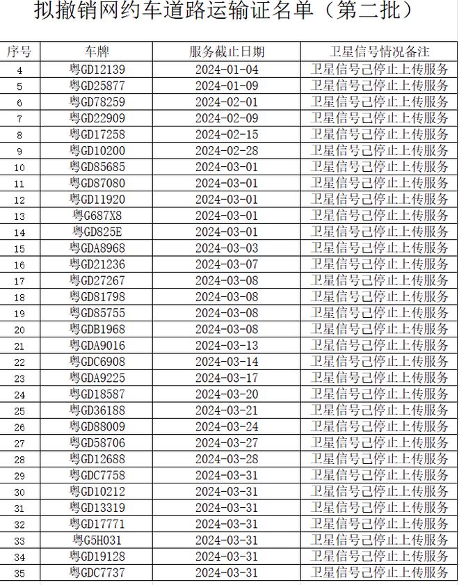 另外,7月25日,湛江市交通運輸局向昆明盛智易聯科技有限公司湛江分公司**(365約車)、天津歐亞汽車租賃服務有限公司湛江分公司(歐亞出行)、泰安市通帆汽車服務有限公司湛江分公司(通帆出行)、長燃智享(寧夏)新能源科技有限公司湛江分公司(妥妥出行)、深圳萬順叫車雲信息技術有限公司湛江分公司(萬順叫車)、峨眉山市利安汽車服務有限公司湛江分公司(明智出行)、廣東粵運發展有限公司湛江分公司(粵運悦行)、廣州如約數據科技有限公司湛江分公司(如約出行)、梅州蜂派網絡科技有限公司湛江市分公司(蜂派出行)、重慶小租網絡科技有限公司湛江市分公司(招招出行)、武漢風韻出行信息科技有限公司湛江分公司(風韻出行)**告知: