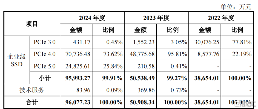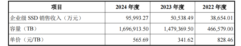 2024年,公司超過99%的收入來自銷售數據中心企業級SSD產品。