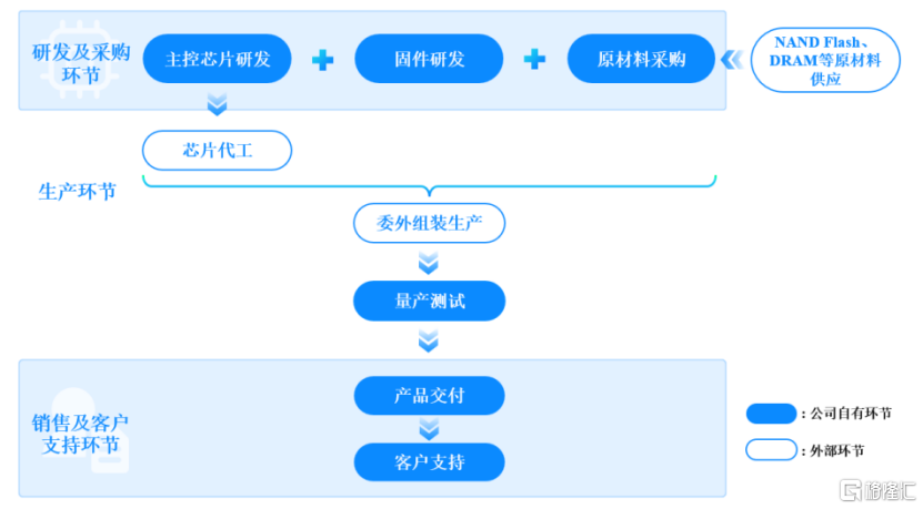公司具備數據中心企業級SSD“主控芯片+固件算法+模組”全棧自研能力,並委託EMS代工廠進行企業級SSD的組裝生產。