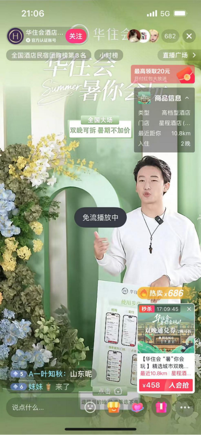 有業內人士透露,去年抖音曾邀請了一些高星酒店入駐開設直播號,但部分品牌考慮到抖音的低價心智,並沒有答應邀約。一直到今年,抖音才進一步深入跟連鎖品牌酒店的合作。