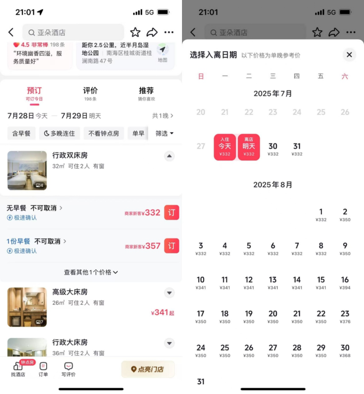 淘寶閃購則在重慶、杭州等少數地區上線了“特價酒店”入口;美團在酒店下單頁面推出了專享大額外賣券;京東也同樣推出了訂酒店送大額外賣券的優惠。