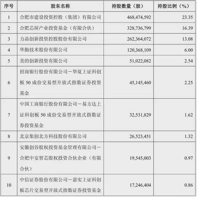 本次交易前,華勤技術未持有晶合集成股份,而在交易完成後,華勤技術將成為晶合集成第四大股東,晶合集成的前十大股東情況如下圖所示: