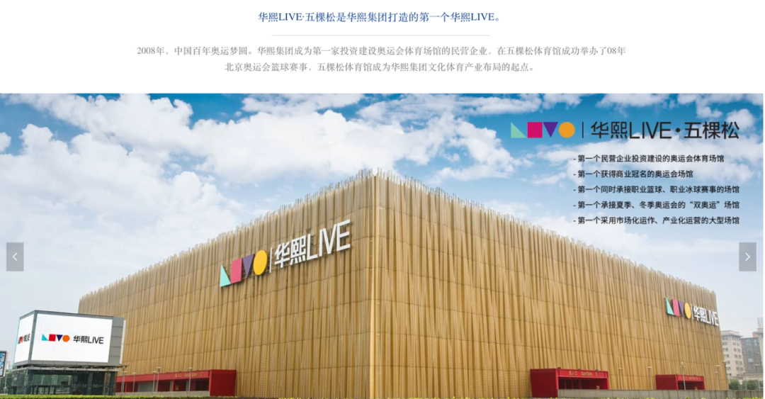 尤其是五棵松體育館的建成,這是國內首個由民營企業投資建設的“雙奧場館”,承辦了2008年和2022年的奧運賽事。後續華熙國際還建設了北京時代美術館,在文體產業上頗有建樹,並向全國各地輸出運營經驗。