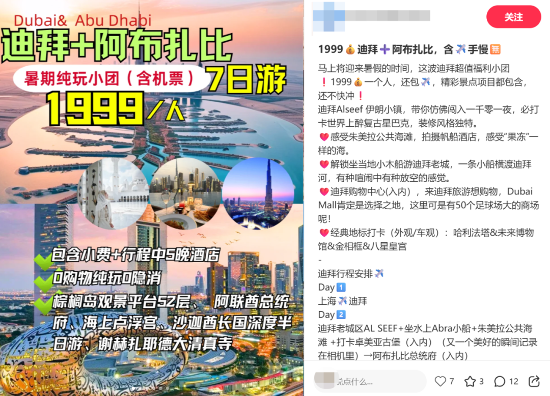 社交媒體上也是滿滿的迪拜低價遊“種草”廣告。