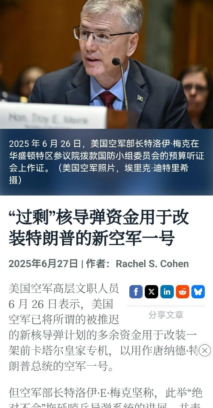 資金超支也就算了,連裝備時間都在一而再再而三地推遲,從2029年全面更換,到現在怕不是更換到2035年之後都換不完。就這,特朗普都好意思從這裏邊抽出10億美元出來給自己修飛機……