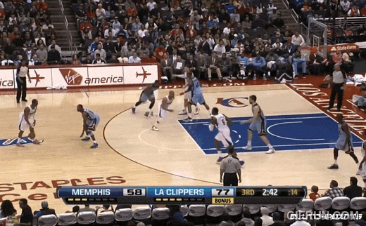 等這個套路成型後,還有別的玩法。格里芬罰球線要位,小喬丹疑似要和保羅擋拆,扯空了灰熊內線,格里芬此時轉身內切,保羅高拋空接。