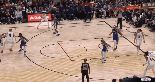 然而我最喜歡的一個細節,是這樣的:之前盧卡給歐文——歐文?!——送了空拋扣籃。