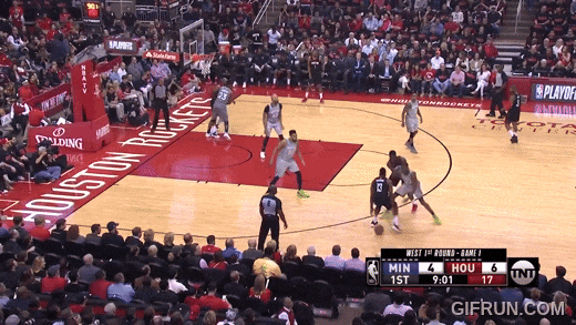 ——哈登的三分球威脅,對面沒法繞過掩護,只好給他突破身位。