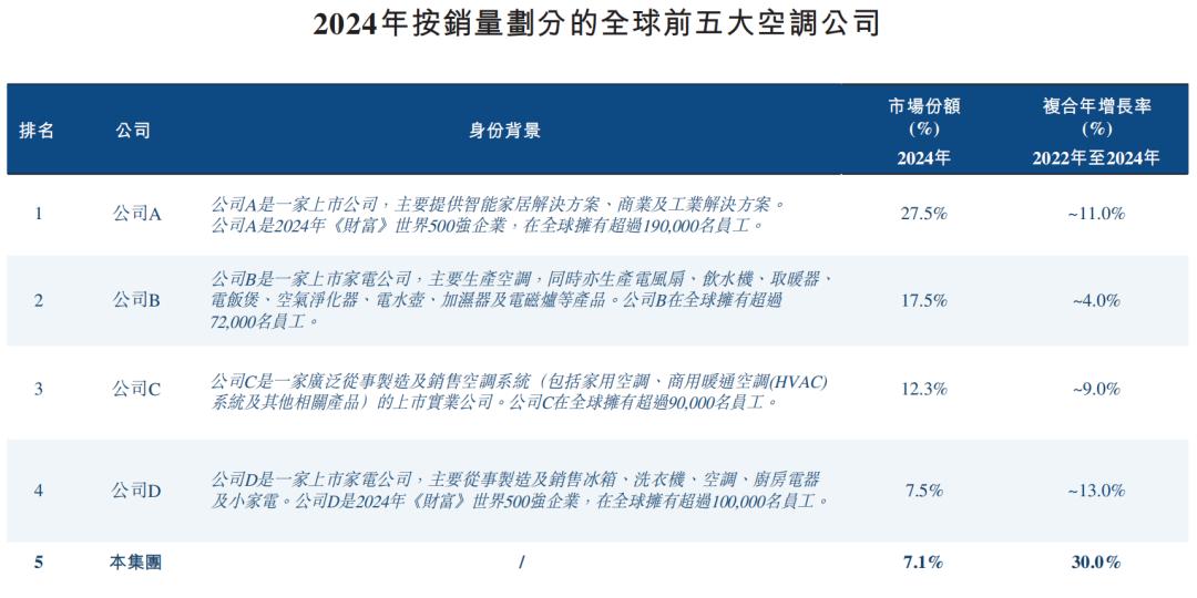 據弗若斯特沙利文的資料顯示,按銷量計算,2024年,奧克斯是全球第五大空調提供商,市場份額達7.1%,也是中國大眾市場家用空調第一品牌,市場份額達25.7%。而這個“大眾市場”指的是面向終端消費者的售價在人民幣2500元以下的空調市場。