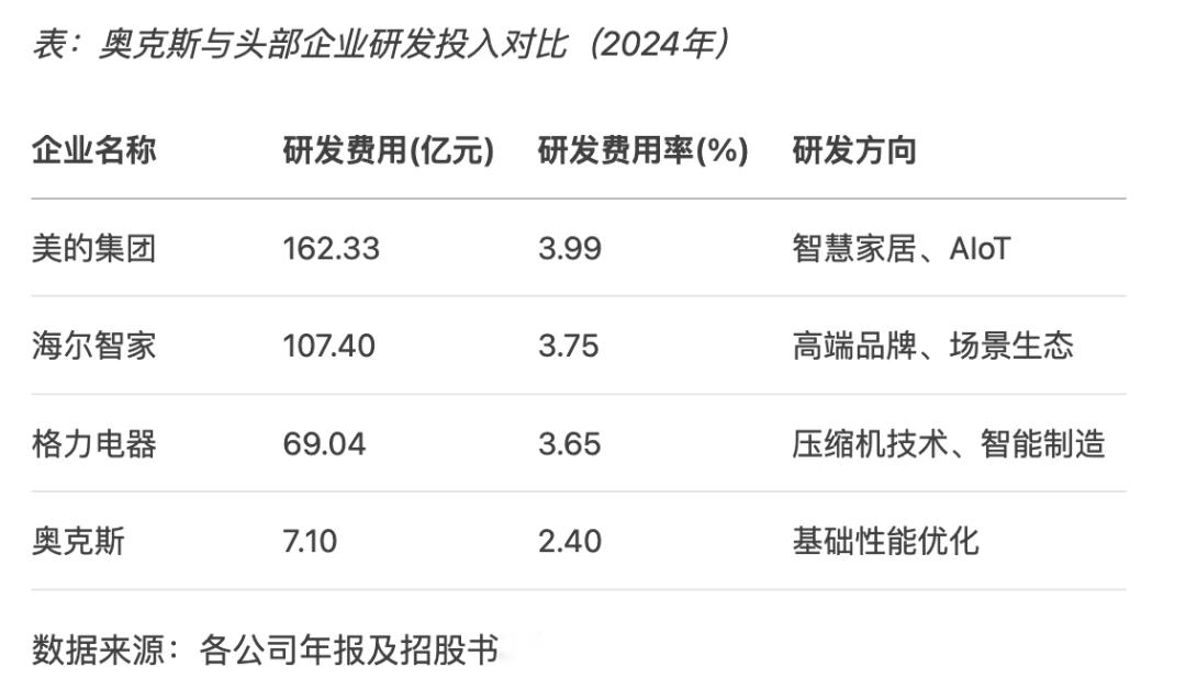 儘管有依賴單一空調業務、營收體量較小等因素的影響,但就直觀對比來看,奧克斯的創新研發意識與投入確實遠不及同行。