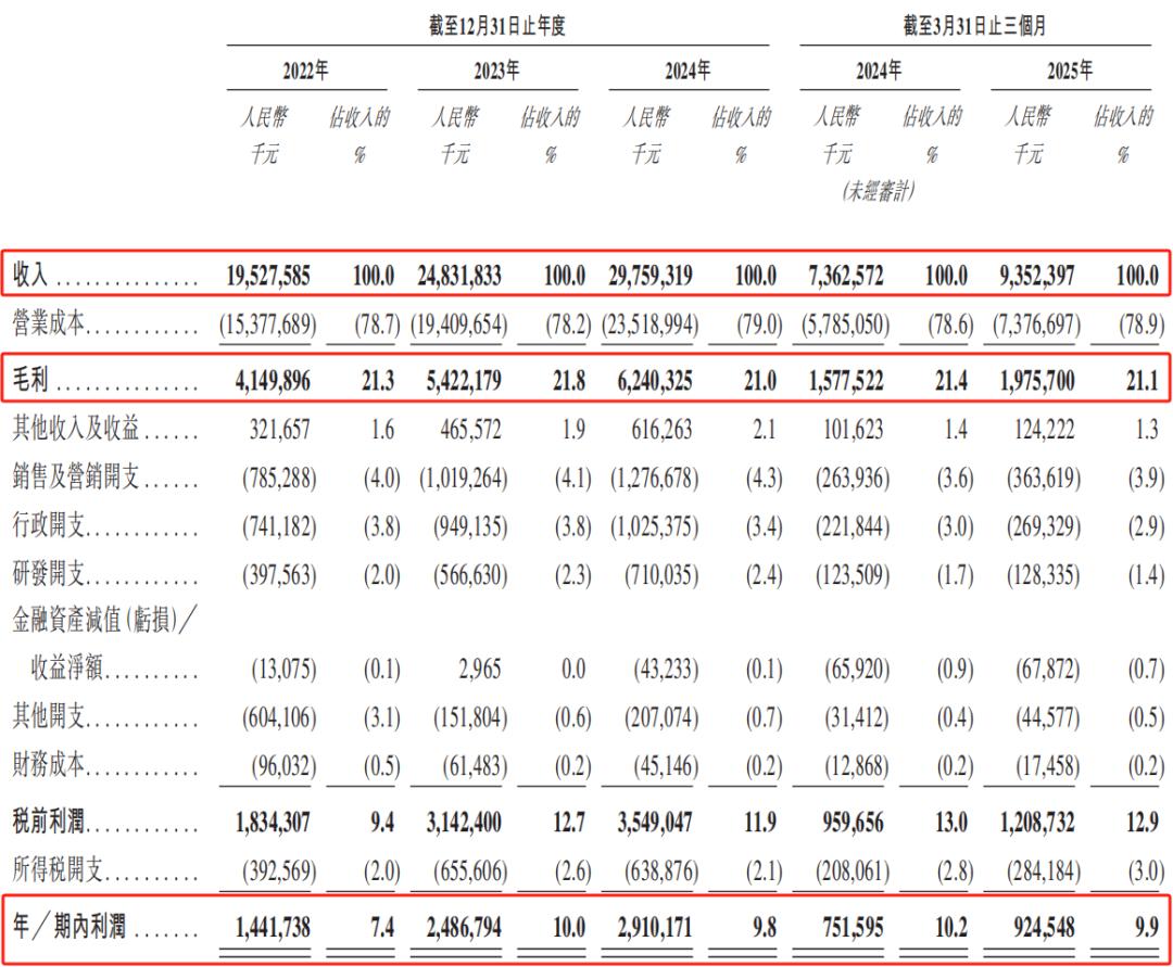 二次赴港IPO,信心滿滿的奧克斯也展示了一系列亮眼數據:2022年至2024年,公司營收從195億元增至297億元,複合年增長率達23.4%,遠超期全球空調市場的4.6%,處於行業領先水平。