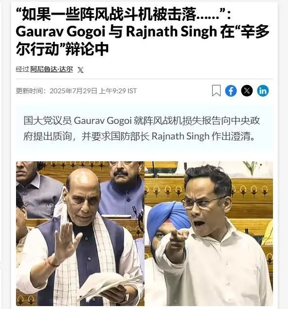 據《印度斯坦時報》消息,28日印度議會下院召開會議,期間國大黨議員高拉夫·戈戈伊向莫迪政府發難,要求公佈印度空軍在5月份的印巴衝突中究竟有多少架戰機被擊落,尤其是損失了多少架“陣風”戰機。