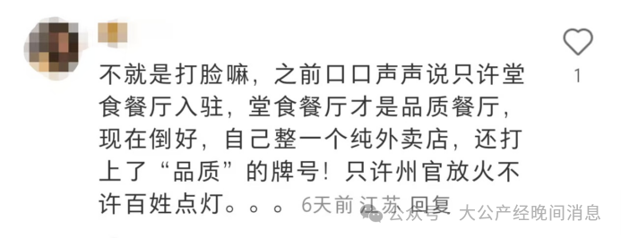 該消息一出,輿論瞬間炸鍋,部分網友認為京東這一行為很“打臉”。“之前口口聲聲説只許堂食餐廳入駐,堂食餐廳才是品質餐廳,現在自己做了個純外賣店,還打上了‘品質’的牌號!”網友怒懟。