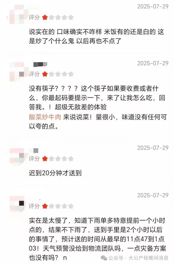 大公產經觀察注意到,七鮮小廚(長保大廈店)僅僅上線一週多,其差評已超30條,內容涉及“缺斤少兩”“配送時間慢”“發錯菜品,在線聯繫不上”“完全無視我標註的免辣”……