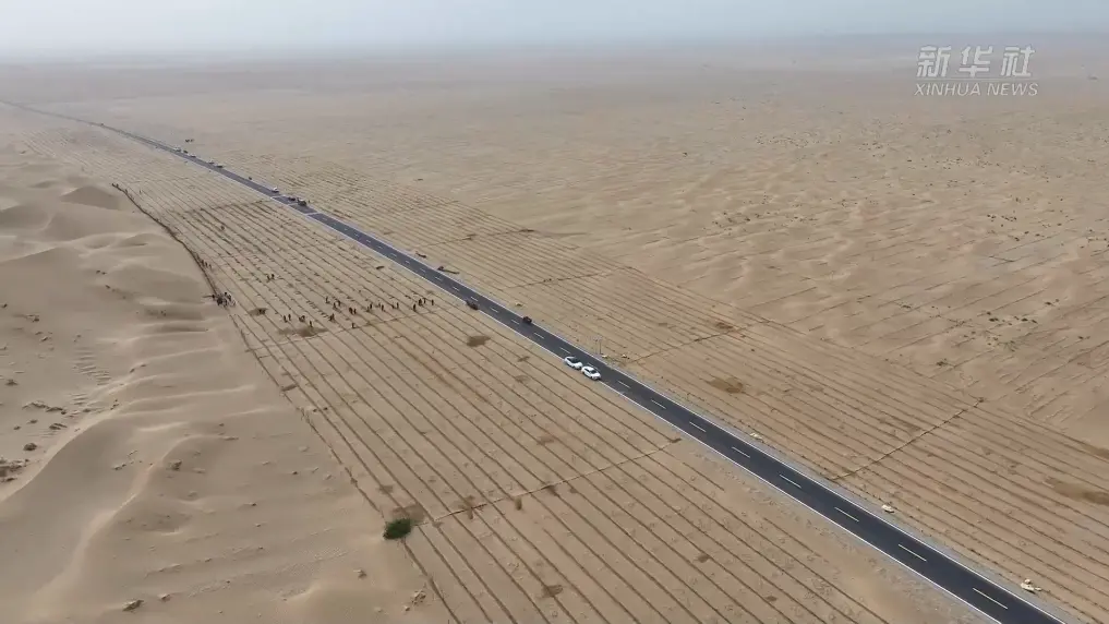 那天下午,隨着最後一株玫瑰苗被種進沙地,圍繞塔克拉瑪干沙漠修建的3046公里綠色阻沙防護帶,正式完成鎖邊合攏。這個從上世紀70年代陸續啓動的生態工程,在經歷了近半個世紀的推進後,終於畫上了階段性句號。