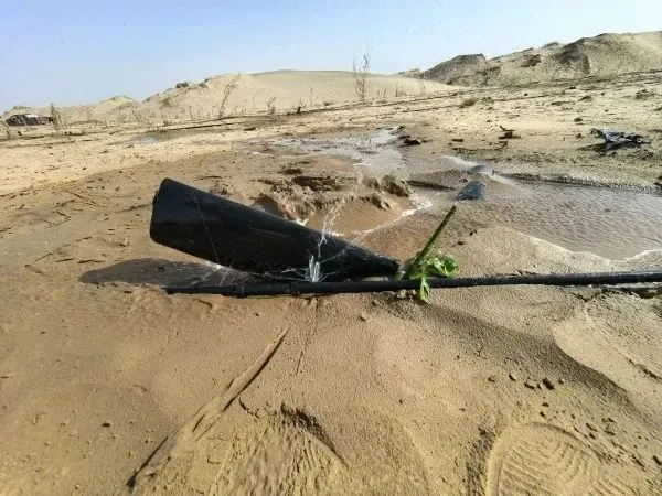 為沙漠中的植綠進行滴灌,確保苗木成活/圖源:策勒縣融媒體中心