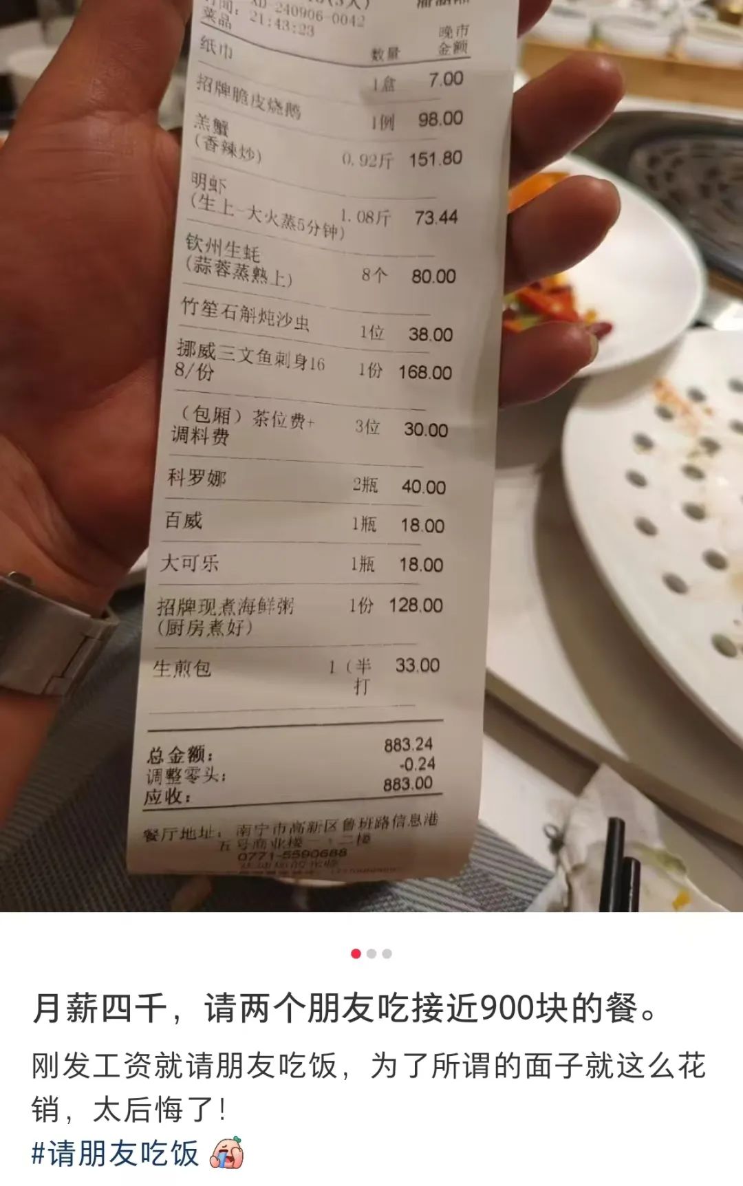 你看他們一邊舉杯説“兄弟幹了”,一邊下意識地掏出手機掃小程序看有沒有滿減優惠。“吃頓好的”成了需要策劃和預算的項目,和以前那種“走,擼串去!”的隨性比,已經像換了一個時代。
