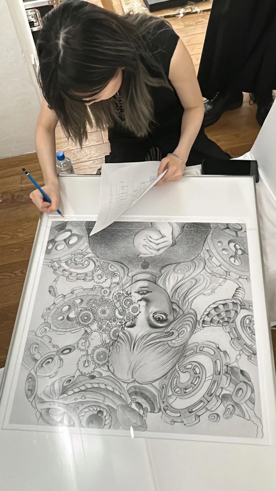 從小到大,她把那些無法被現實消解的情緒,一筆一筆藏進畫裏。她的筆下,有解離的身體、冰冷的機械齒輪、探索自我的少女。