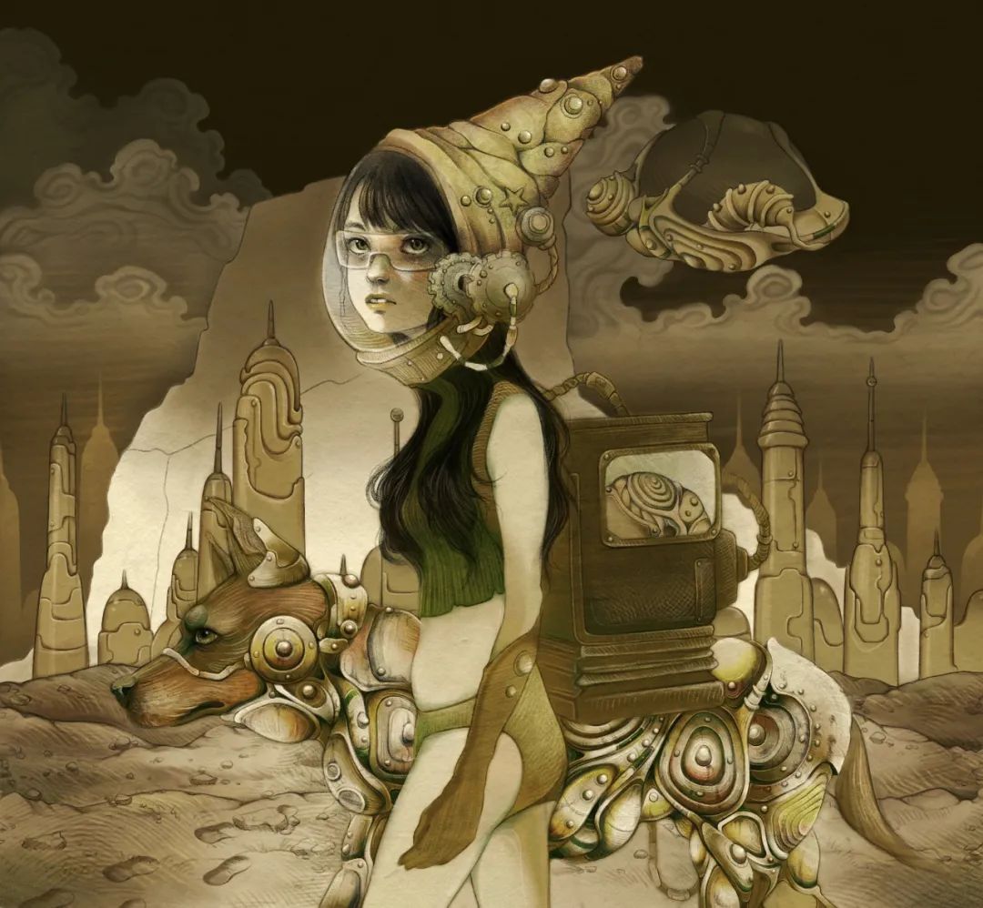 有段時間,我特別喜歡貓頭鷹,覺得它是我的守護神,也曾一度想養一隻,因此它頻繁出現在我的畫裏。後面我又對機械齒輪、大門牙等元素很感興趣,它們也都成為了我作品中的意象。