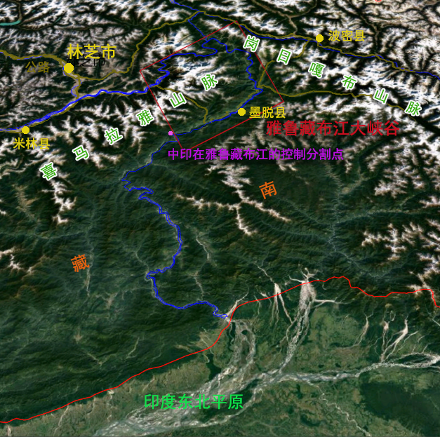 當年英國人在藏南總得來説是延着分水嶺劃的麥克馬洪線,但由於雅魯藏布江大峽谷地勢過於險峻,就沒有進去考察,整體留給了中國,變成了隸屬林芝的墨脱縣。換句話説,墨脱即位於藏南,又不屬於印度認為可以憑藉麥克馬洪線,爭奪主權的藏南。