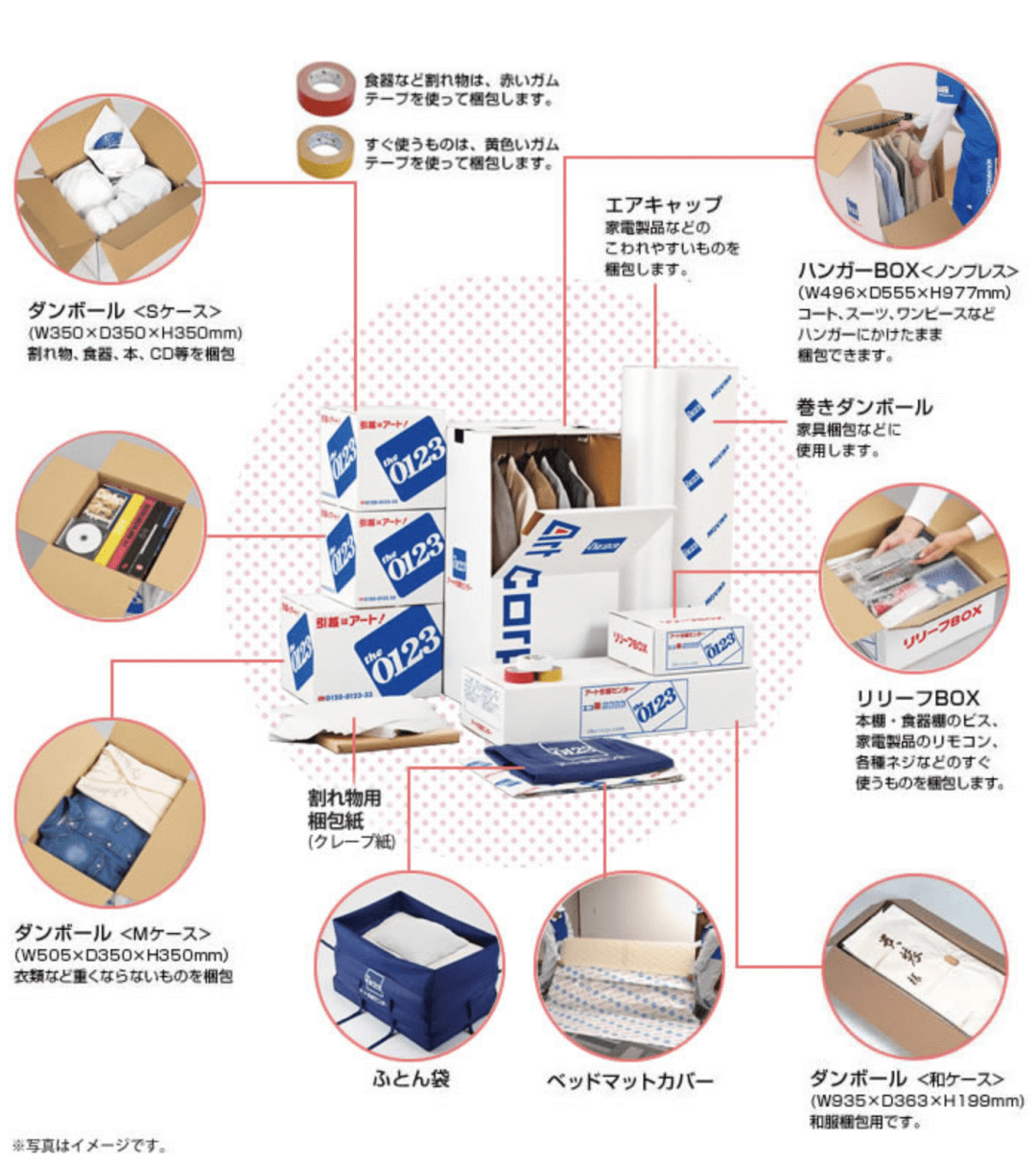 |不僅提供紙板,還提供“袋子”、“氣泡包裝緩衝材料(氣帽)”、“衣架盒”、“餐具盒”等作為包裝材料