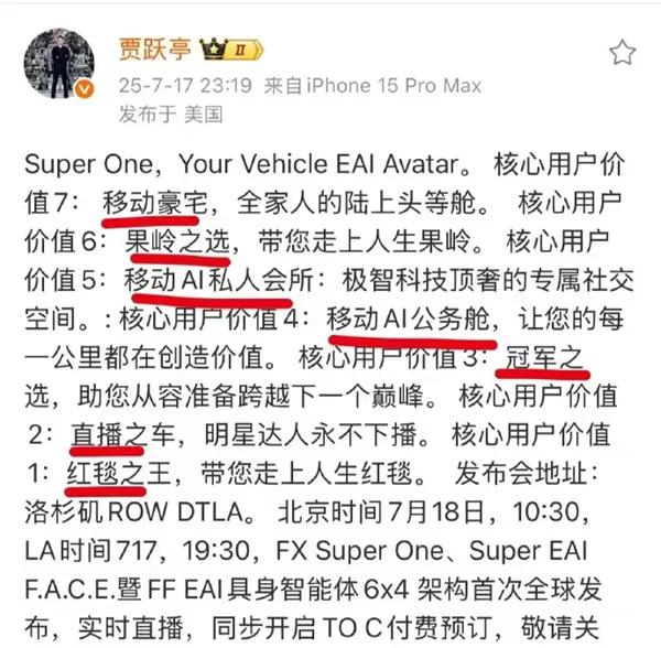 賈躍亭作為貼標籤大師,給第二款新車足足貼了7個標籤:無論是移動豪宅、直播之車、還是紅毯之王,這些標籤的共同點就兩個:豪華+實用。