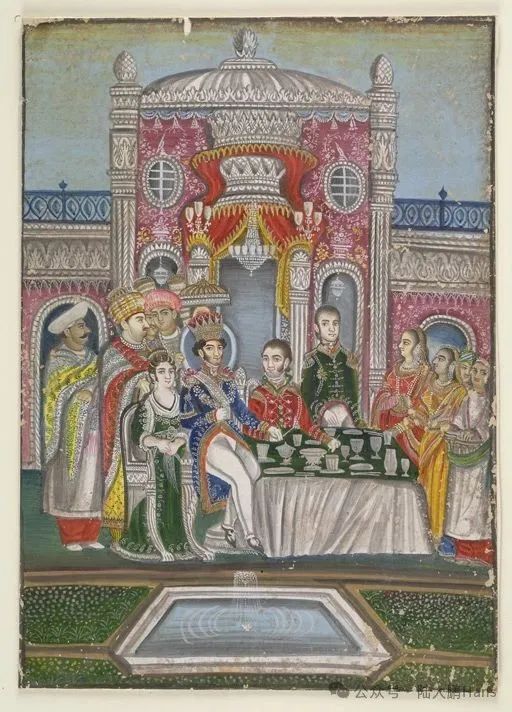 僅僅幾年前,這個卑賤的傢伙還“為了一個盧比願意給任何人理髮”。1830—1831年冬季,他在勒克瑙遊蕩,尋找餬口的營生。他為當時的常駐代表馬多克先生做鬈髮的效果不錯。國王自己的頭髮是筆直的,渴望擁有鬈髮,於是僱用了德魯塞特。很快德魯塞特就成為國王尋歡作樂的主持人,還為他提供更多其他服務。【36】他負責僱用和解僱國王的教師、舞女和樂師。在德魯塞特先生指引下,國王的雙桅小艇“奧德蘇丹”號配上了絲綢旗幟和鍍金的船首雕像,儘管它頂多也就是在戈默蒂河航行幾百碼而已。德魯塞特試飲國王的葡萄酒,以防有人下毒。他把一大羣兄弟、妻子、情婦和冒險家帶來享福,最後於1836年席捲估計價值9萬英鎊的鉅款,逃之夭夭。