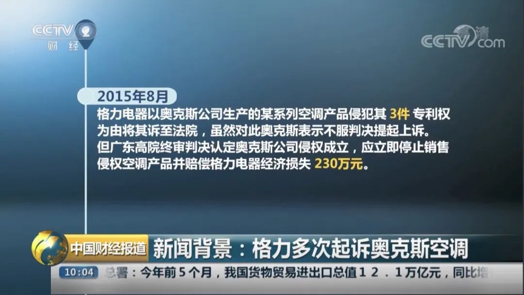 於是從2015年起,格力空調就多次以“侵犯專利”為由起訴奧克斯,一開始奧克斯根本無法招架,賠償金額從230萬元到4000萬元逐漸遞增。