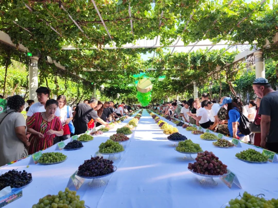 第三十屆中國絲綢之路吐魯番葡萄節現場,展示了220種吐魯番本地葡萄。