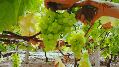 **無核白葡萄是吐魯番的當家品種,種植面積佔總面積的95%。**論甜度,它比不上玻璃脆,論長相,它比不上無核紫,但脆生微酸的鮮食口感,更添一絲夏日的清爽。同時,它也是最主要的制幹葡萄品種。