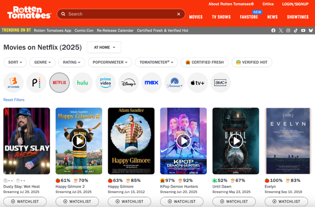 爛番茄的核心指標是 “爆米花指數”(Audience Score)和“新鮮度”(Tomatometer)。前者由普通觀眾評分,滿分5星換算為百分比,3.5星及以上視為推薦。後者則經過平台認證的專業影評人投票計算。他們會對電影進行“推薦/不推薦”投票,60%以上推薦即為“新鮮”(Fresh),反之則為“腐爛”(Rotten)。