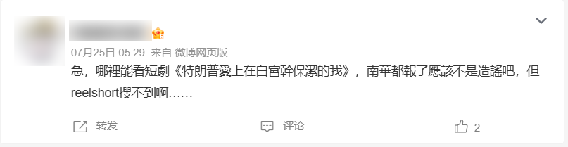 一位業內人士和我説,自己睡醒都懵了。因為這新聞一眼假,首先根本沒人拍了這部劇,自己也去問了合作的外國短劇製作團隊,根本就沒人聽説過。