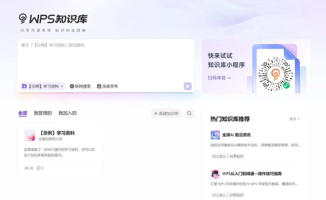 還有WPS知識庫,也是個好東西。對企業來説,能夠整合內部大量的碎片化信息,比如新人入職培訓,出差費用怎麼報銷、辦公設備的領用和登記要找誰……