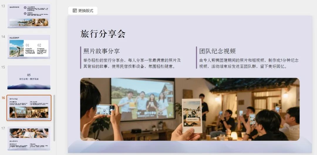 差評君挑了個免費的,選中之後自動生成,沒兩分鐘一份團建方案PPT就新鮮出爐了。