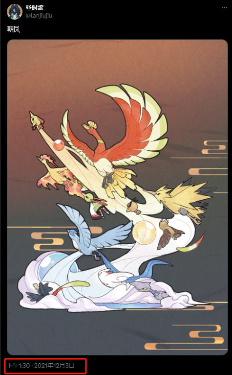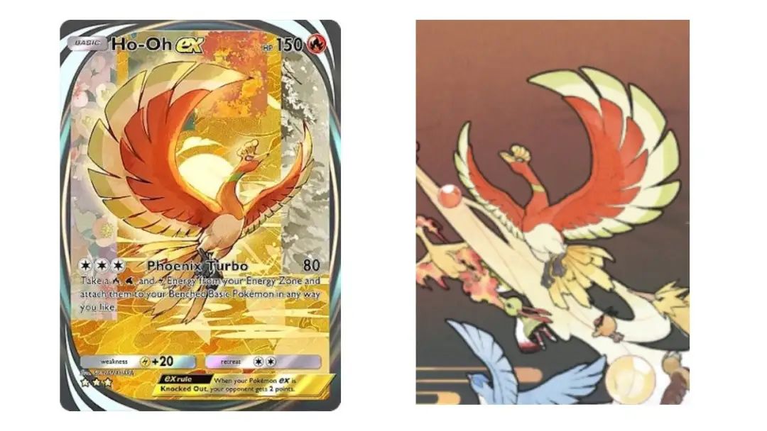 更嚴重的事態隨後發生。X上有一位名叫“晝時歌”的中國畫師發現,新卡“鳳王EX”的卡圖和她於2021年創作的一幅作品高度相似。