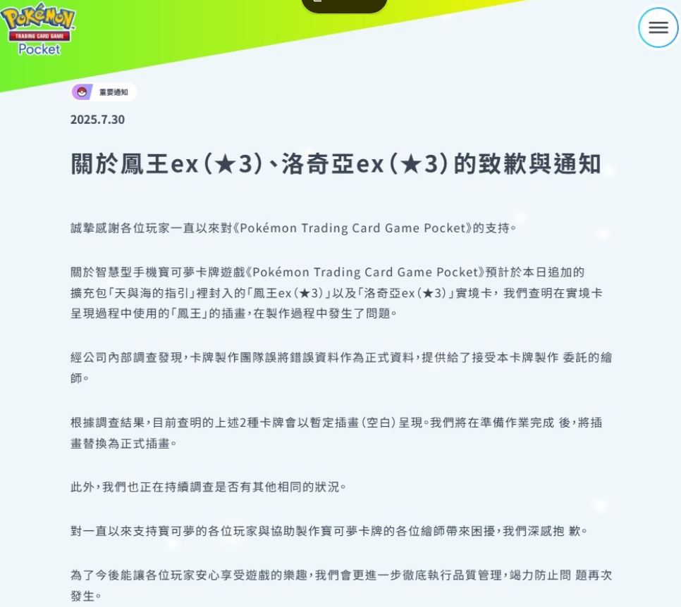 寶可夢手遊涉嫌抄襲中國畫師,官方發表致歉聲明_風聞